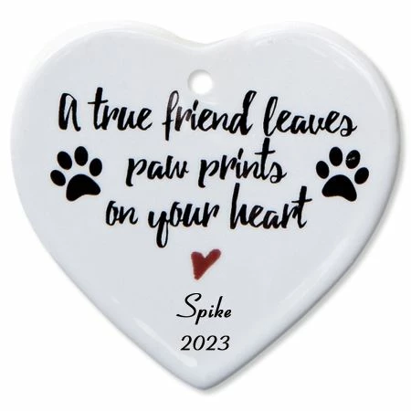 The important things in life, simply stated on this white ceramic ornament. Includes gold ribbon for hanging. 2 3/4″ x 3″.