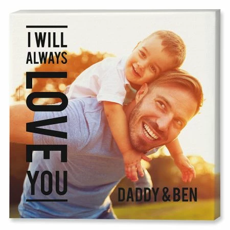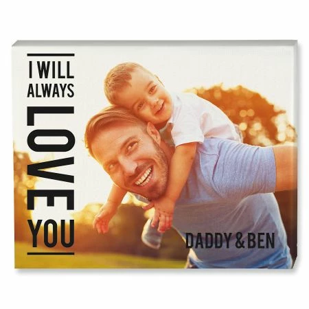 One bright beautiful moment becomes a cherished lifetime treasure. Stunning canvas exquisitely showcases a favorite photo, stylishly captioned with “I will always love you” and printed with the name(s) you specify. A treasure of a lifetime, your photo is reproduced on premium canvas using vibrant, superior quality, scratch-and-fade-resistant inks.