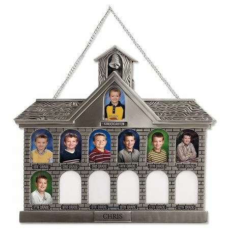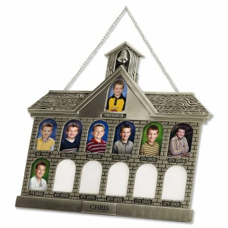 Create a storehouse of precious memories! Each window frames a 1 1/4 x 1 3/4 ” photo under a protective pane. Brassplated, handcast jeweler’s metal has antiqued finish. Display with easel back, or hang from included chain. 9 x 10 1/2 “W.