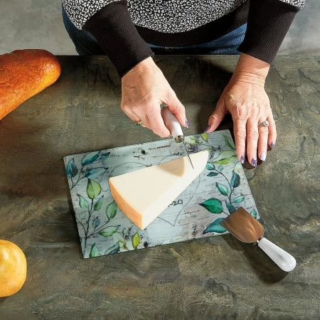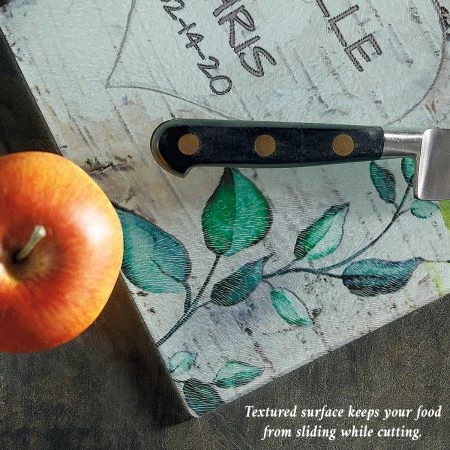 Tempered glass cutting board adds flair to any kitchen; 7 3/4″ x 11 1/4″. Hand wash.