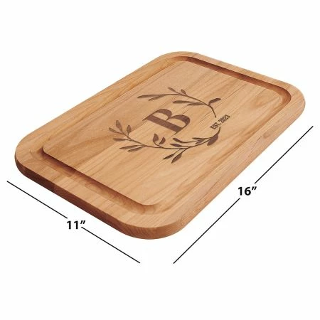 Choose a thoughtful gift exclusively etched with the recipient’s initial and surname. Naturally lustrous and eco-friendly red alder wood cutting board is crafted of sustainable bacteria-resistant hardwood. Will not nick or dull cutlery, can be used on both sides.