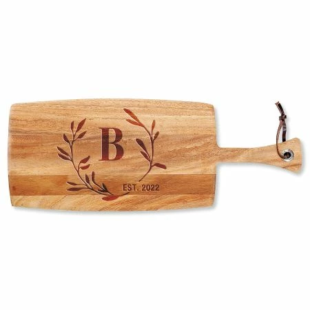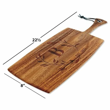 Exclusive engraving on stunning acacia wood makes this versatile gift an enviable treasure. Leather hanger; 1/2 x 8 x 20 1/2″L.