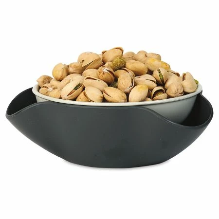 Perfect solution to serving snacks. Lower bowl is curved outwards where food waste can be dropped. Ideal for olives, nuts, and candy.