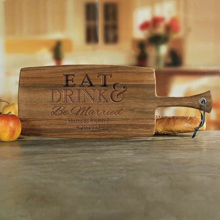 Eat, Drink & Be Married Engraved Wood Paddle Cutting Board