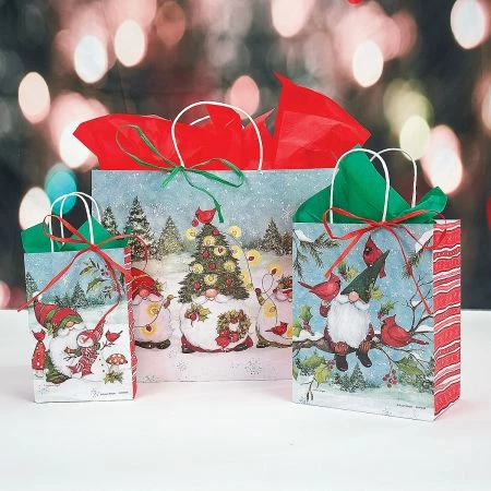 Gnomes are so cute and enduring—yet somewhat whimsical mysteries. Gnomes have become symbols of the Christmas season and beyond. Make your gifts stand out this holiday season with our Gnome Gift Bag Set. The 40-piece gift bag set includes everything needed to add that special touch to your holiday gifts.