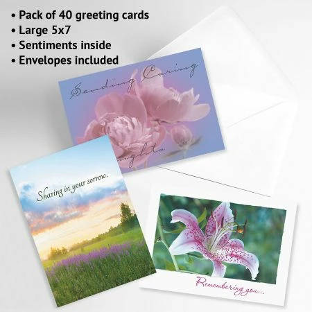 Touching assortment of sympathy cards reach out to those who grieve. Floral and nature images and sensitive, thoughtful sentiments provide comfort . 5″ x 7″; envelopes included. Printed in the USA.