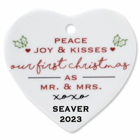 The important things in life, simply stated on this white ceramic ornament. Includes gold ribbon for hanging. 2 3/4″ x 3″.