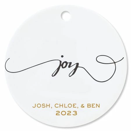 The important things in life, simply stated on this white ceramic ornament. Includes gold ribbon for hanging. 2 3/4″ x 2 3/4″ diameter.