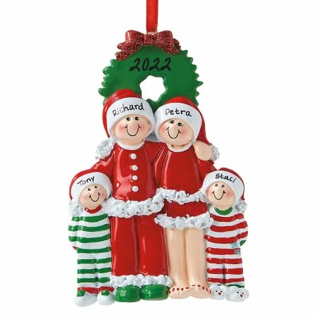 Fun personalized Christmas ornament is made of resin, hand-lettered with your personalization, and comes with hanging ribbons or strings. 4 – 1/2″ high.