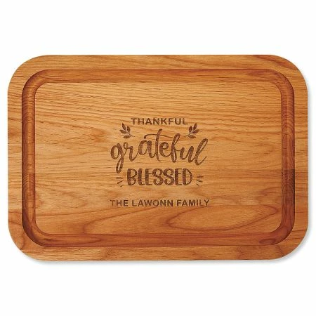 The best thankful gift ever. Ideal for holiday gifting, too, naturally lustrous and eco-friendly red alder wood cutting board is exclusively etched with the personalization you specify. Crafted of sustainable bacteria-resistant Oregon red alder, it will not nick or dull cutlery and can be used on both sides.