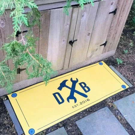 Mark his territory with a personalized all-weather mat symbolizing one of his favorite things. 23 x 57″.