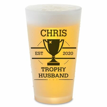 Your favorite brew is all about you! 16-oz. frosted pint glass is personalized and features unique details; dishwasher/microwave safe.