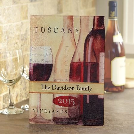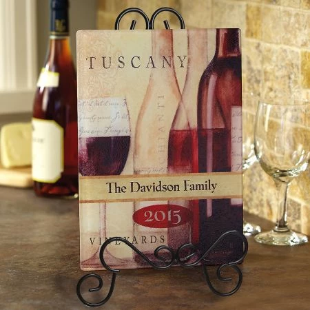 Our personalized tempered glass cutting board displays your name over a Silverware motif.